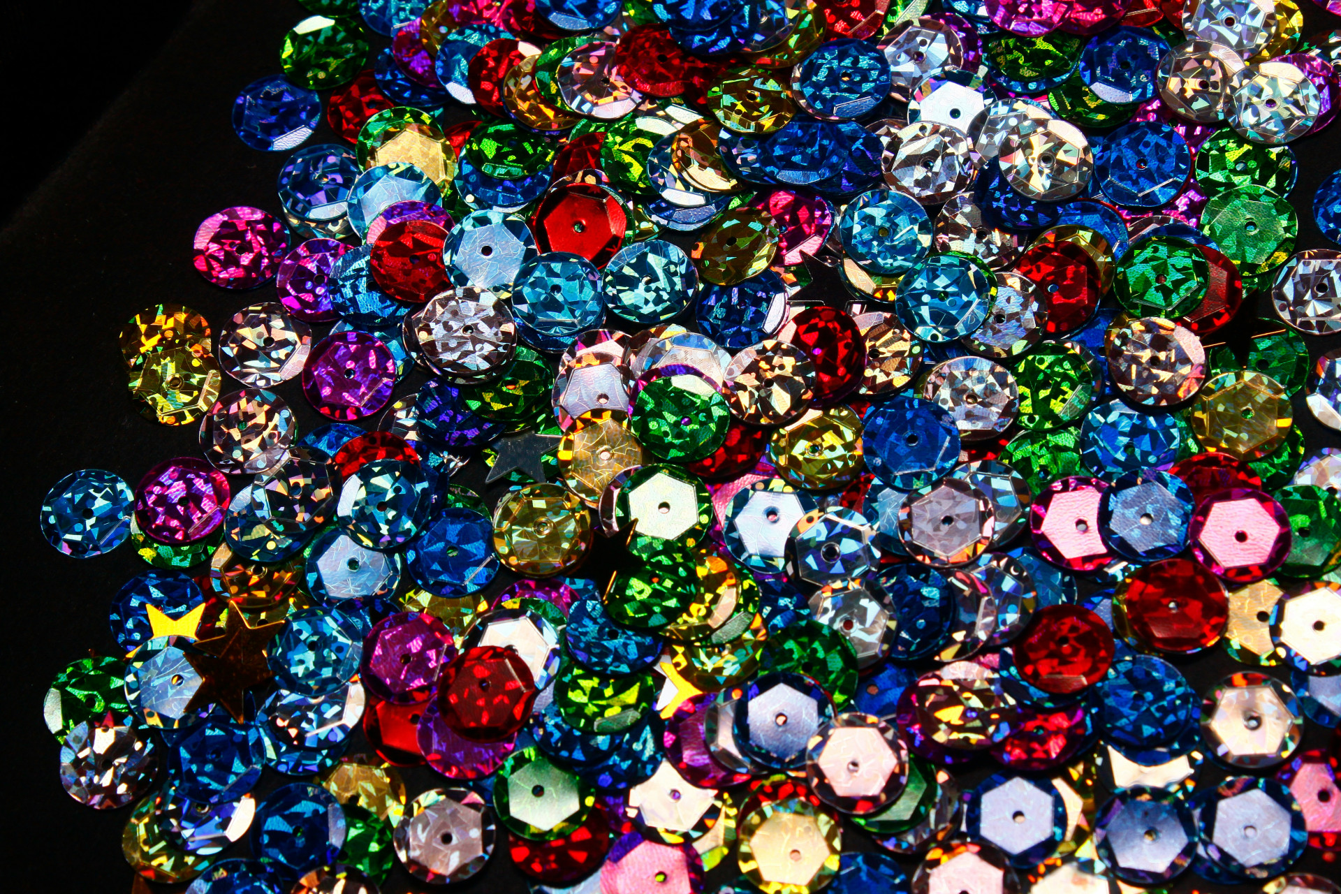 Disse har en lille fordybning i midten, som reflekterer lyset ekstra kraftigt. De bruges ofte i kostumer og dekorationer, hvor man vil have maksimal glans.